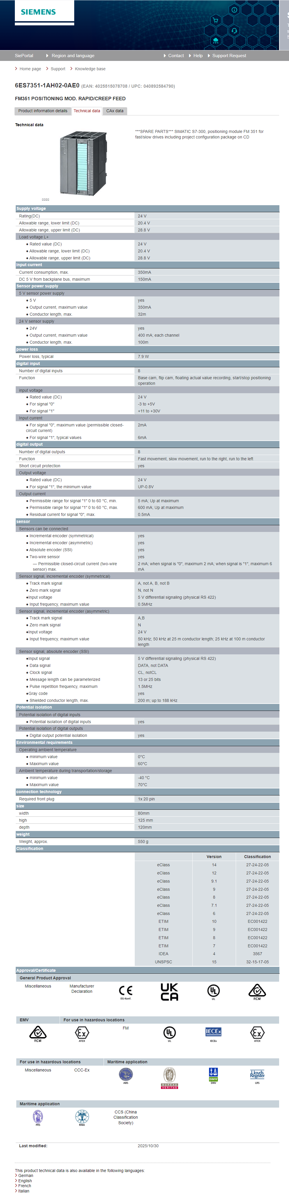 SIMATIC S7300, FM 351 positioning module 6ES7351-1AH02-0AE0