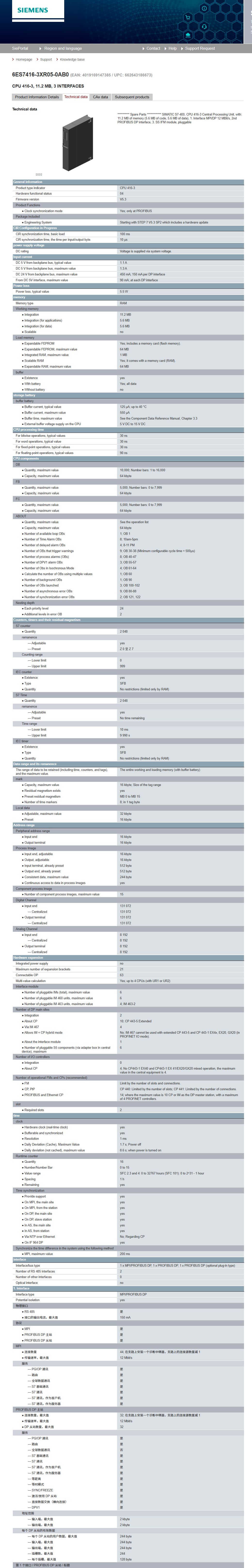 SIMATIC S7-400, CPU 416-3 central processing unit 6ES7416-3XR05-0AB0