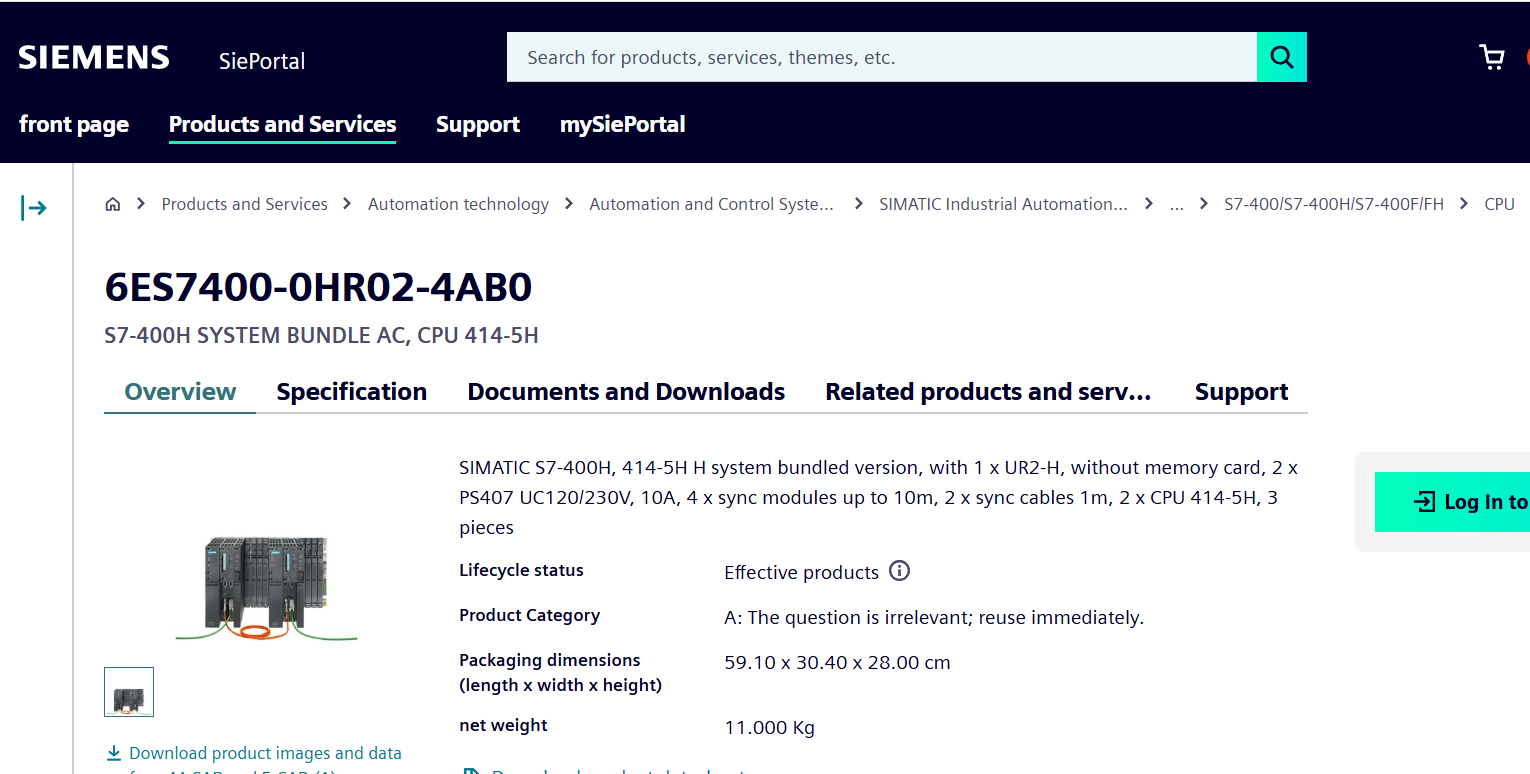 SIMATIC S7-400H, 414-5H system kit 6ES7400-0HR02-4AB0
