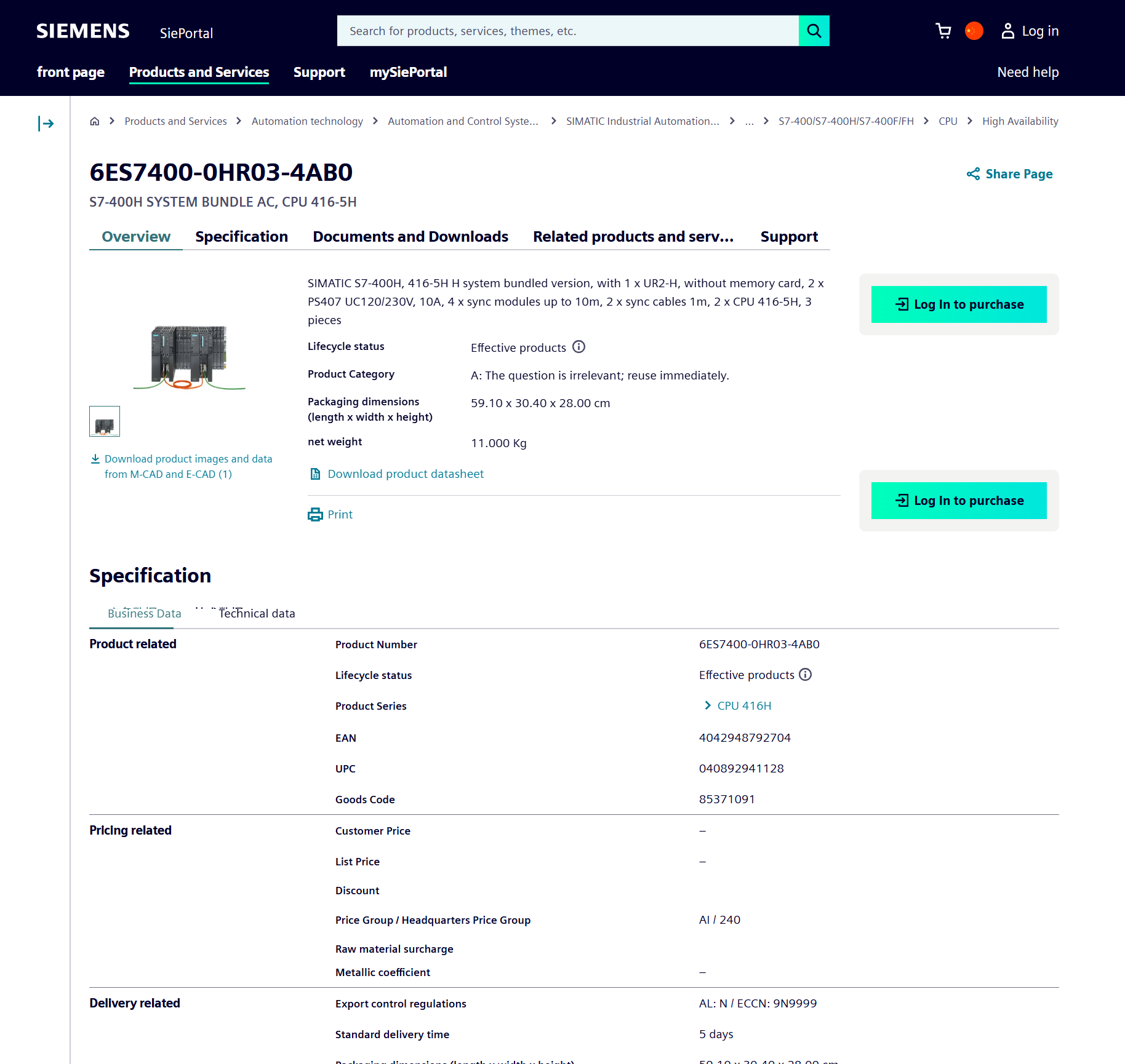 SIMATIC S7-400H, 416-5H system kit 6ES7400-0HR03-4AB0