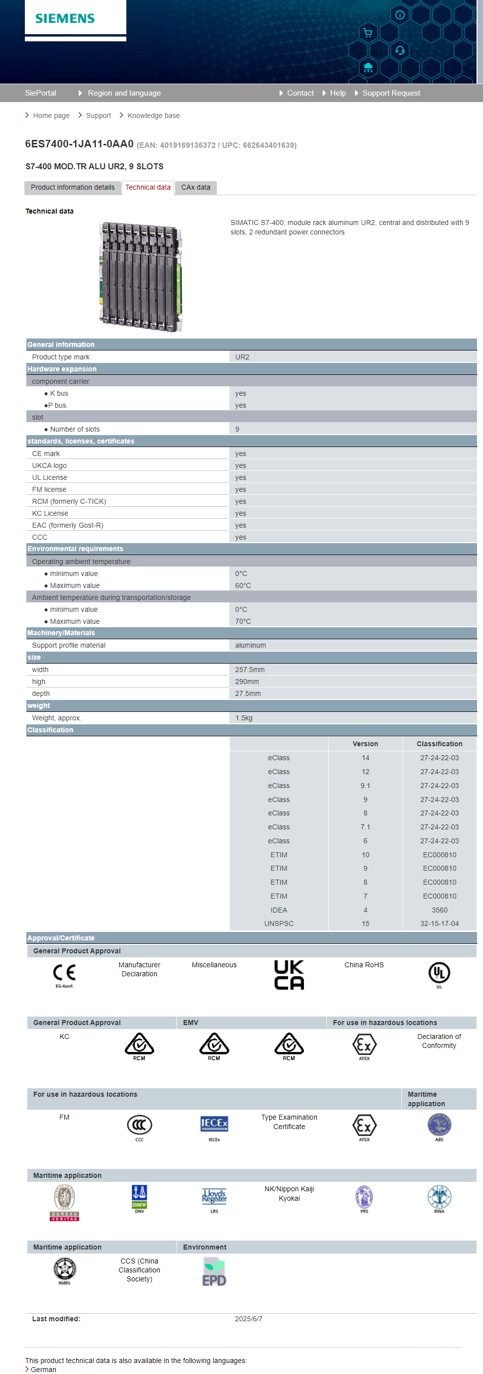 SIMATIC S7-400, module rack aluminum UR2 6ES7400-1JA11-0AA0