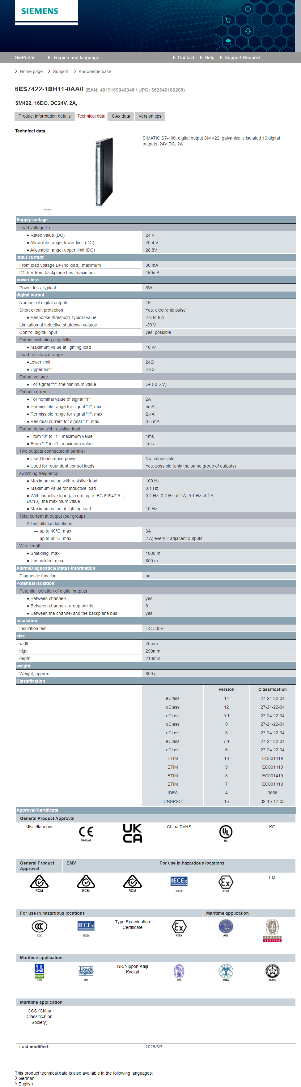SIMATIC S7-400, digital output SM 422 6ES7422-1BH11-0AA0