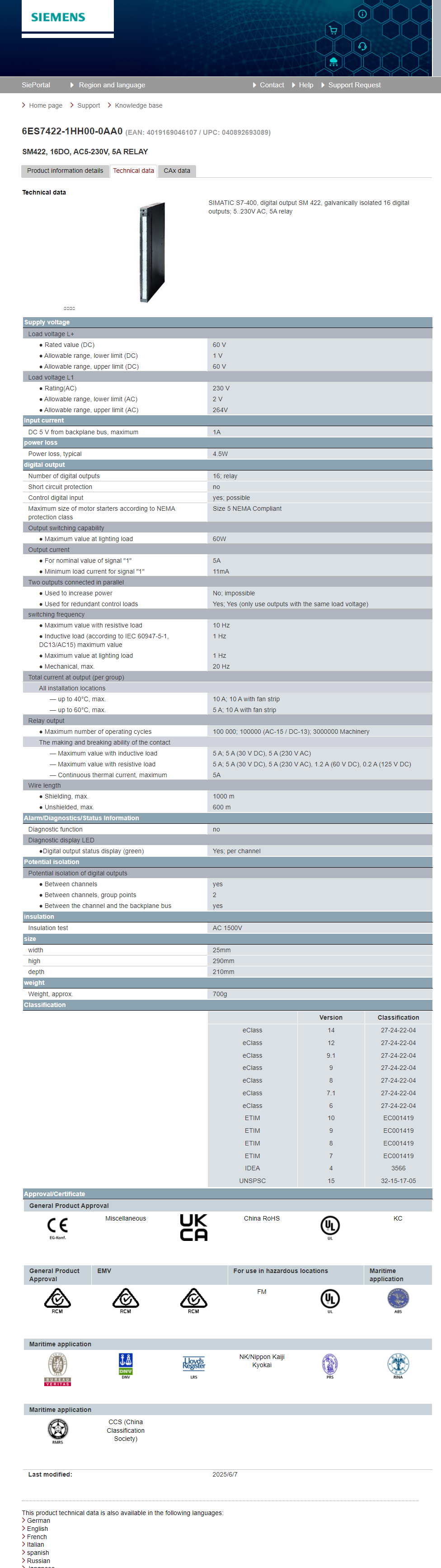 SIMATIC S7-400, digital output SM 422 6ES7422-1HH00-0AA0
