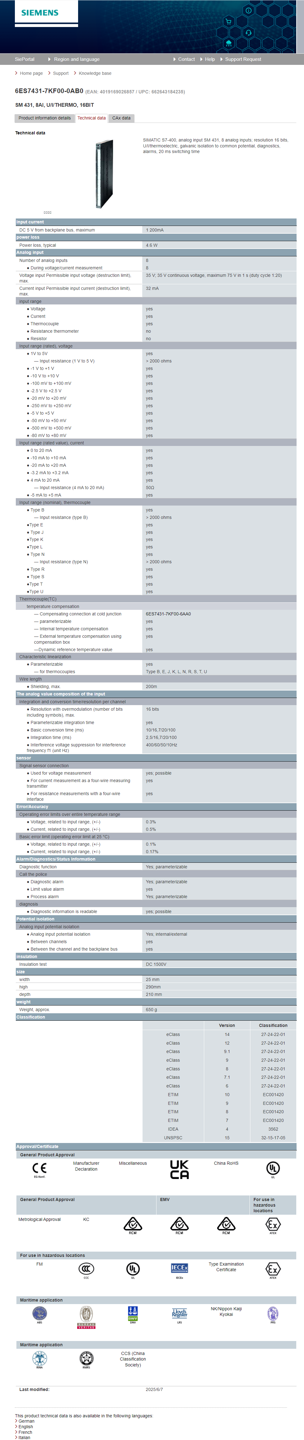 SIMATIC S7-400, analog input SM 431, 6ES7431-7KF00-0AB0