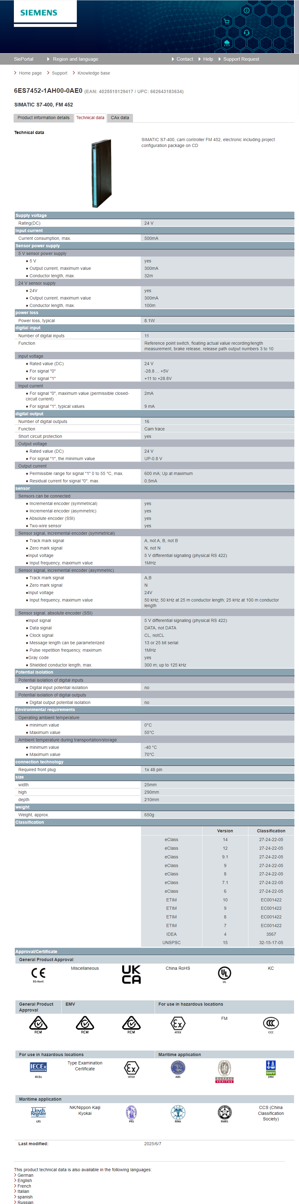 SIMATIC S7-400, cam controller FM 452 6ES7452-1AH00-0AE0