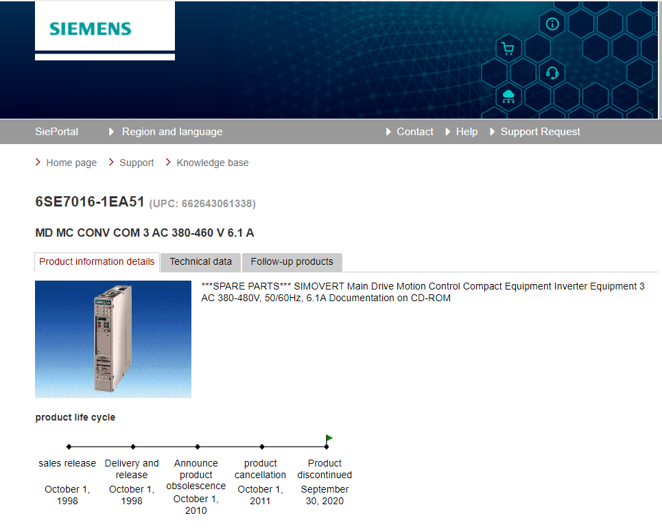 ***SPARE PARTS*** SIMOVERT Main Drive Motion Control Compact Equipment Inverter Equipment 3 AC 380-480V, 50/60Hz 6SE7016-1EA51-Z
