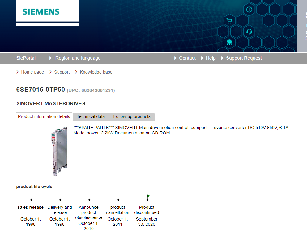 ***SPARE PARTS*** SIMOVERT Main drive motion control 6SE7016-0TP50-Z