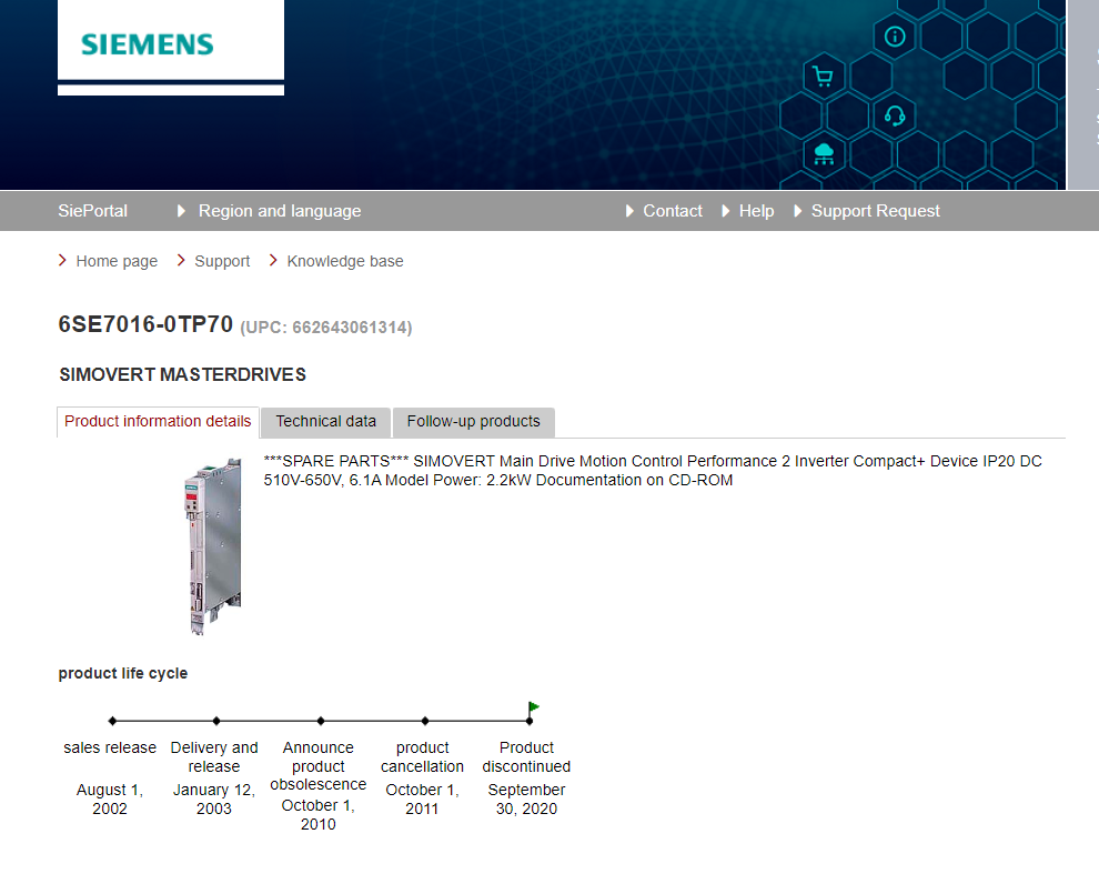***SPARE PARTS*** SIMOVERT Main Drive Motion Control Performance 2 Inverter Compact+ Device IP20 DC 510V-650V 6SE7016-0TP70
