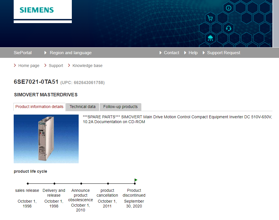 ***SPARE PARTS*** SIMOVERT Main Drive Motion Control Compact Equipment Inverter DC 510V-650V 6SE7021-0TA51-Z