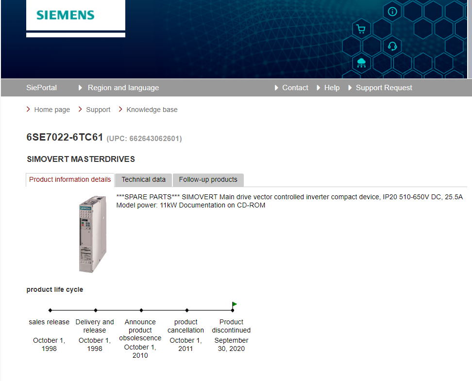 **SPARE PARTS*** SIMOVERT Main drive vector controlled inverter compact device, IP20 510-650V DC, 25.5A Model power: 11kW Documentation on CD-ROM
