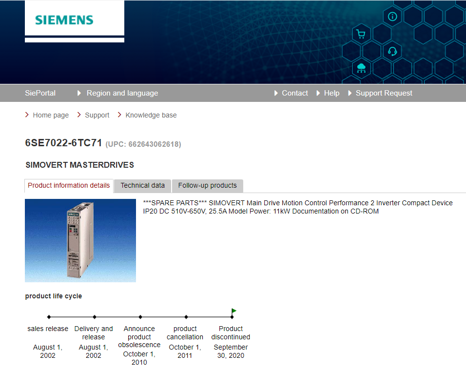 *SPARE PARTS*** SIMOVERT Main Drive Motion Control Performance 2 Inverter Compact Device IP20 6SE7022-6TC71