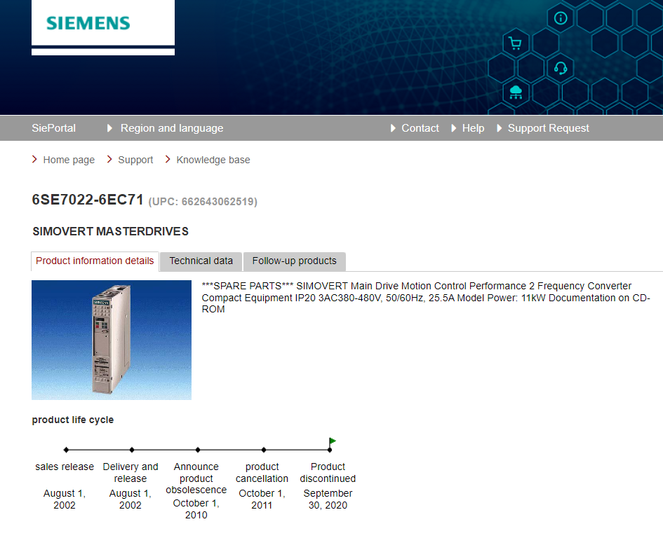 *SPARE PARTS*** SIMOVERT Main Drive Motion Control Performance 2 Frequency Converter Compact Equipment IP20 6SE7022-6EC71