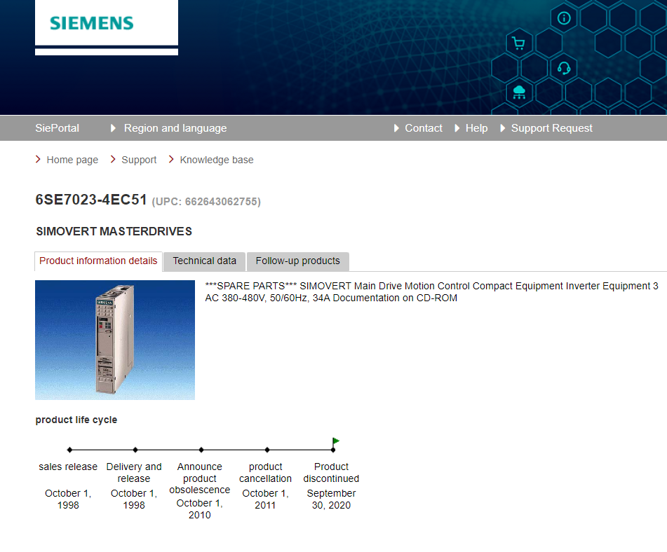 ***SPARE PARTS*** SIMOVERT Main Drive Motion Control Compact Equipment Inverter Equipment 3 AC 380-480V 6SE7023-4EC51