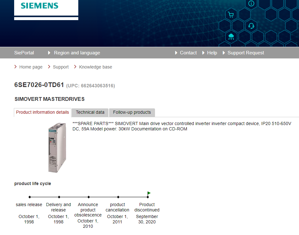 **SPARE PARTS*** SIMOVERT Main drive vector controlled inverter inverter compact device 6SE7026-0TD61