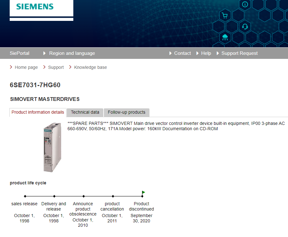 **SPARE PARTS*** SIMOVERT Main drive vector control inverter device built-in equipment 6SE7031-7HG60