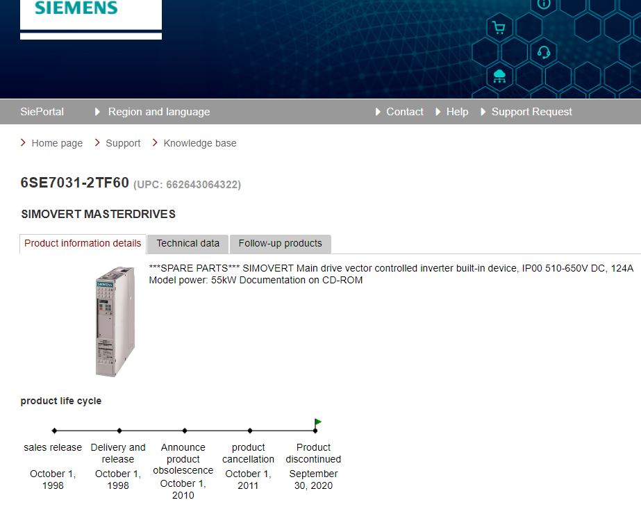 **SPARE PARTS*** SIMOVERT Main drive vector controlled inverter built-in device 6SE7031-2TF60