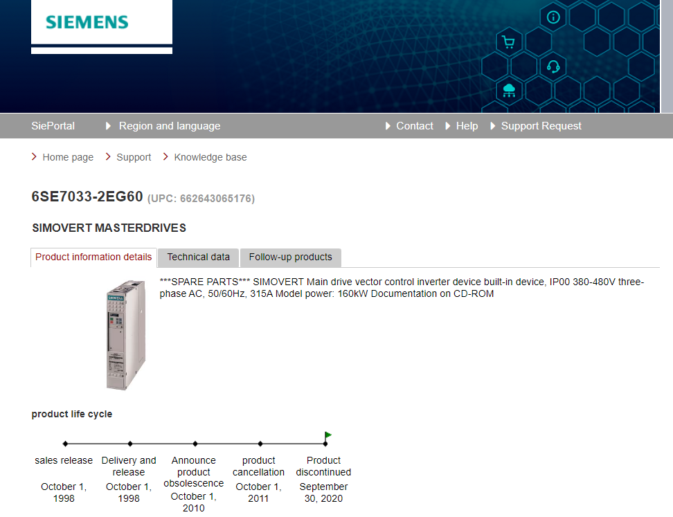 **SPARE PARTS*** SIMOVERT Main drive vector control inverter device built-in device 6SE7033-2EG60