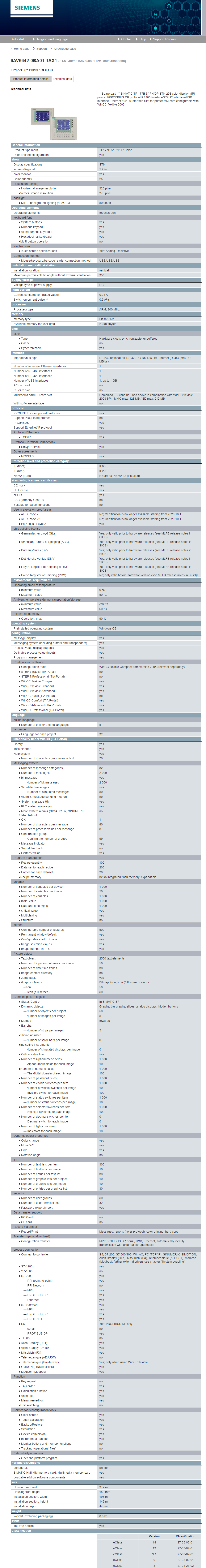 SIMATIC TP 177B 6″ PN/DP STN 256 color display 6AV6642-0BA01-1AX1