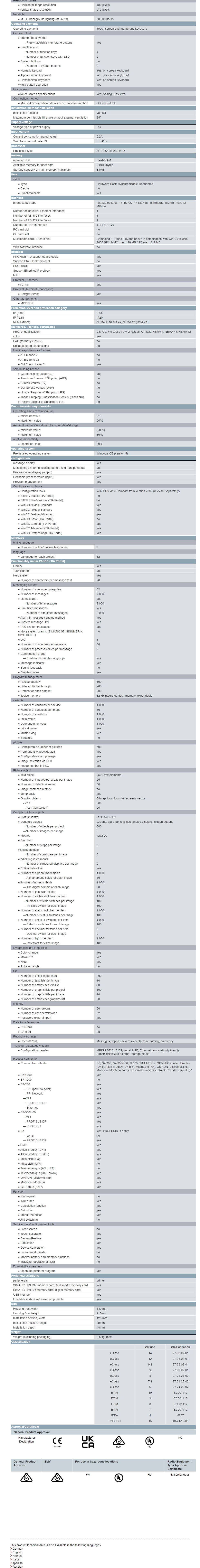 SIMATIC TP 177B 4″ color PN/DP TFT 256 colors – 16:9 display, MPI protocol/PROFIBUS DP protocol RS485 interface/RS422 interface/USB interface Ethernet 10/100 interface Slot for printer MM card configurable with WinCC flexible 2008