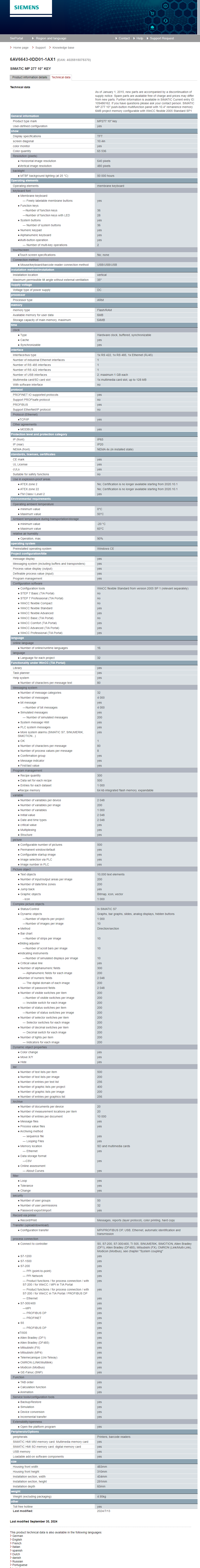SIMATIC MP 277 10″ push-button multifunction panel with 10.4″ remanence memory 6AV6643-0DD01-1AX1