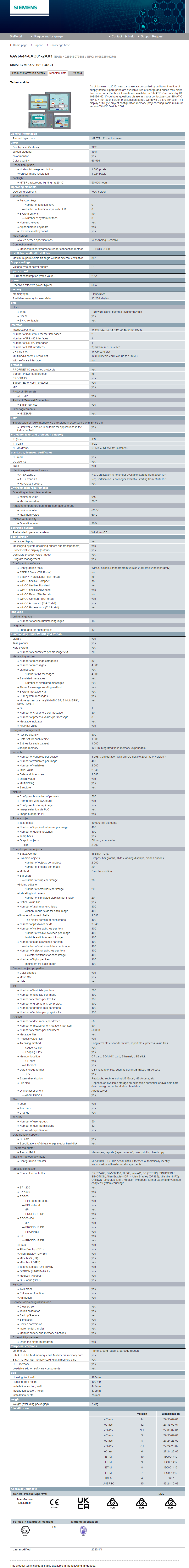 SIMATIC MP 377 19″ touch screen multifunction panel, Windows CE 5.0 19″ color TFT display 12MByte project configuration memory, project configurable minimum version WinCC flexible 2007