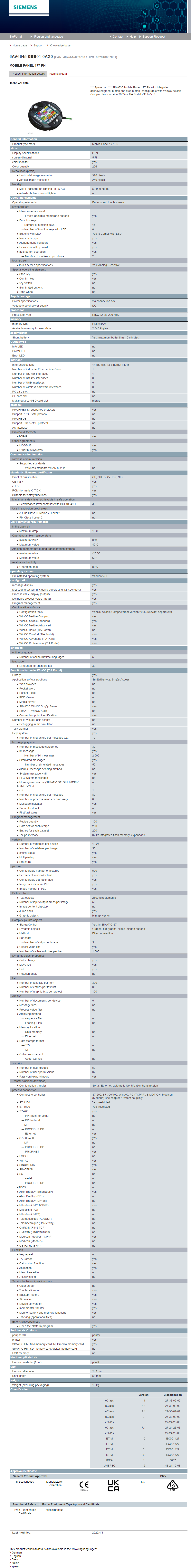 SIMATIC Mobile Panel 177 PN with integrated acknowledgment button and stop button 6AV6645-0BB01-0AX0