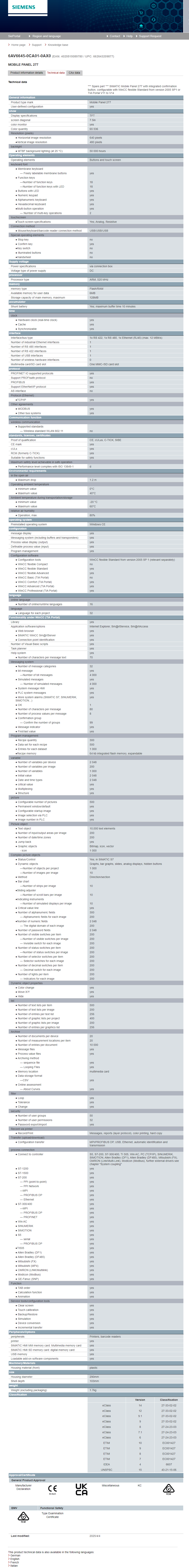 SIMATIC Mobile Panel 277 with integrated confirmation button 6AV6645-0CA01-0AX0