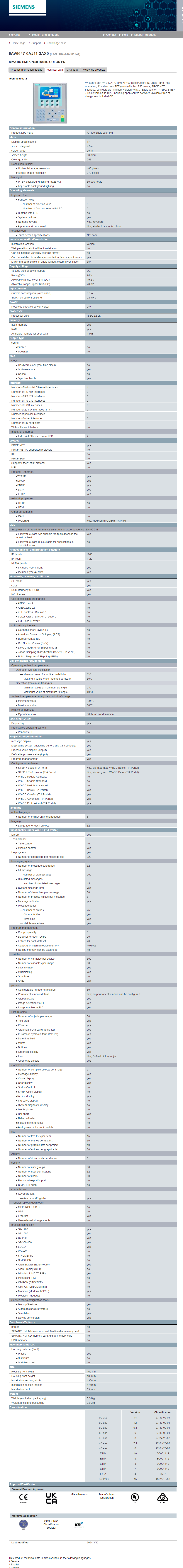 SIMATIC HMI KP400 Basic Color PN, Basic Panel, key operation, 4″ widescreen TFT (color) display, 256 colors, PROFINET interface, configurable minimum version WinCC Basic version 11 SP2/ STEP 7 Basic version 11 SP2, including open source software, available free of charge see included CD
