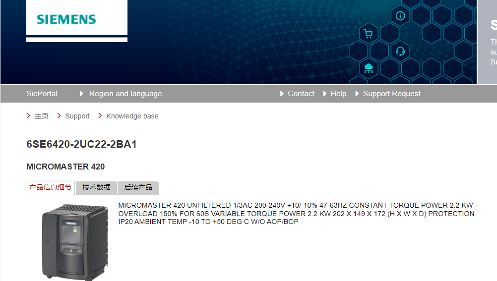 Siemens MM420 series frequency converter 6SE6420-2UC22-2BA1