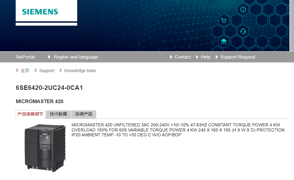 Siemens MM420 series frequency converter 6SE6420-2UC24-0CA1