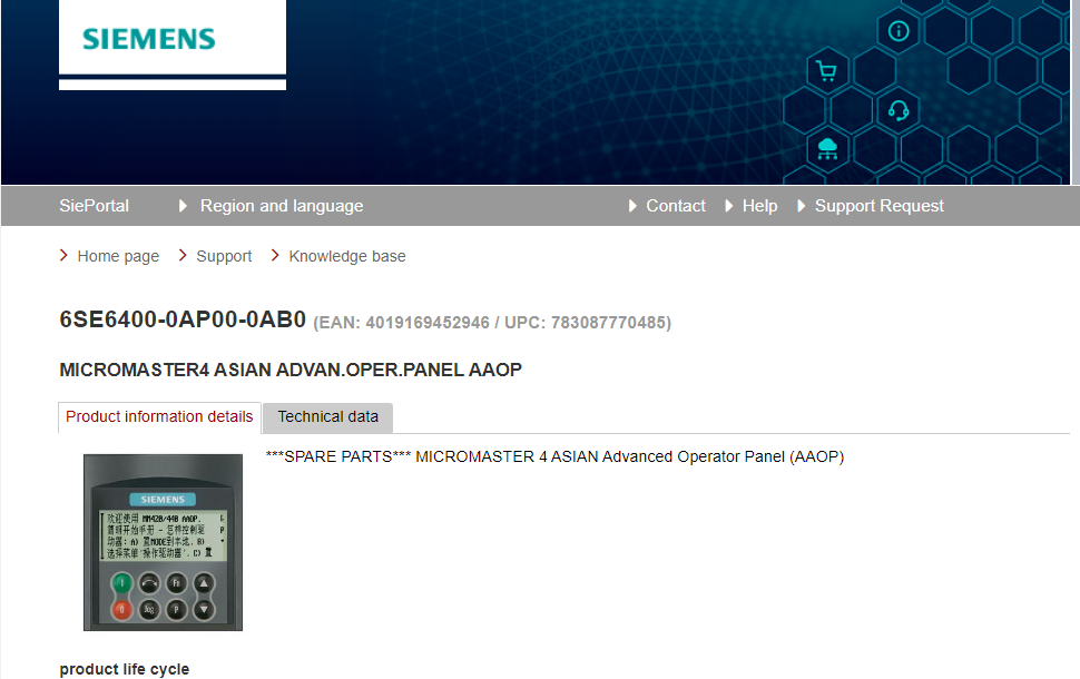 ***SPARE PARTS*** MICROMASTER 4 ASIAN Advanced Operator Panel (AAOP)