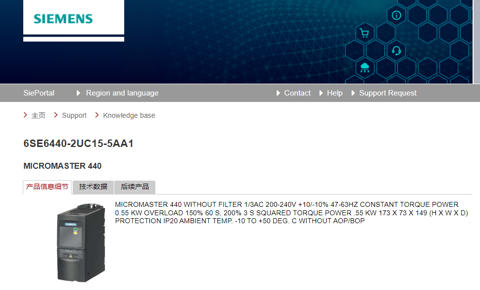 Siemens frequency converter 6SE6440-2UC15-5AA1