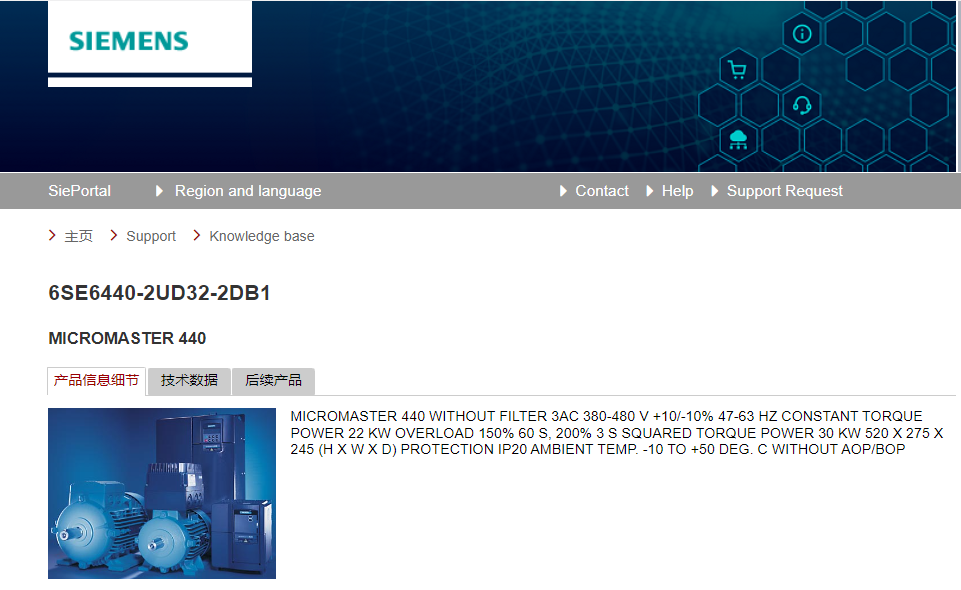 MICROMASTER 440 WITHOUT FILTER 3AC 380-480 V +10/-10% 47-63 HZ CONSTANT TORQUE POWER 22 KW OVERLOAD 150% 60 S, 200% 3 S SQUARED TORQUE POWER 30 KW 520 X 275 X 245 (H X W X D) PROTECTION IP20 AMBIENT TEMP. -10 TO +50 DEG. C WITHOUT AOP/BOP