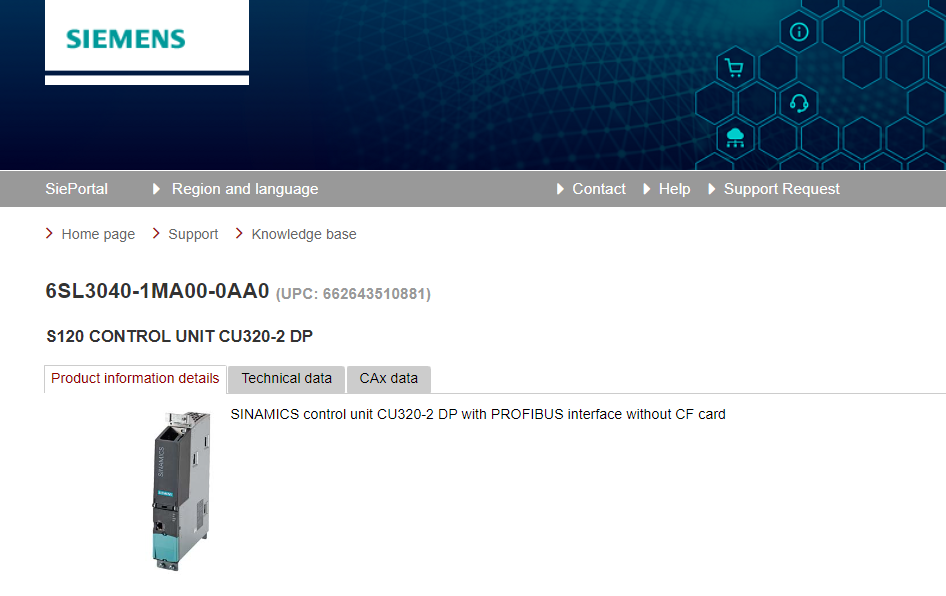 SINAMICS control unit CU320-2 DP with PROFIBUS interface without CF card