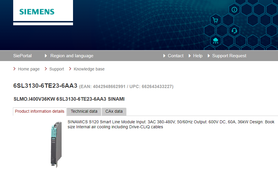 SINAMICS S120 Smart Line Module Input: 3AC 380-480V, 50/60Hz Output: 600V DC, 60A, 36kW Design: Book size Internal air cooling including Drive-CLiQ cables