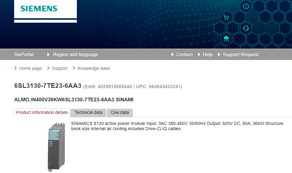 SINAMICS S120 active power module Input: 3AC 380-480V, 50/60Hz Output: 600V DC, 60A, 36kW Structure: book size Internal air cooling includes Drive-CLiQ cables