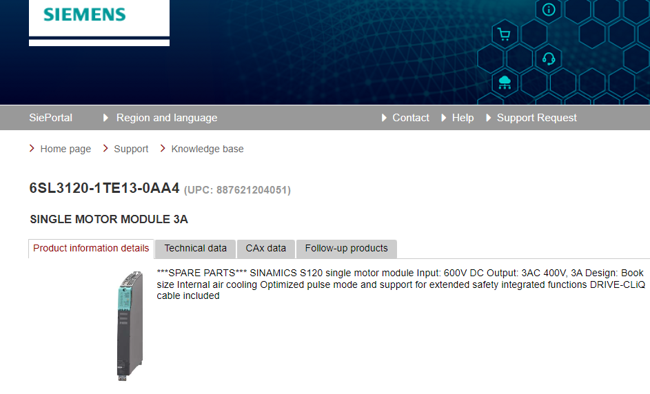 SINAMICS S120 single motor module 6SL3120-1TE13-0AA4