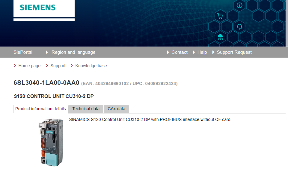 SINAMICS S120 Control Unit CU310-2 DP with PROFIBUS interface without CF card