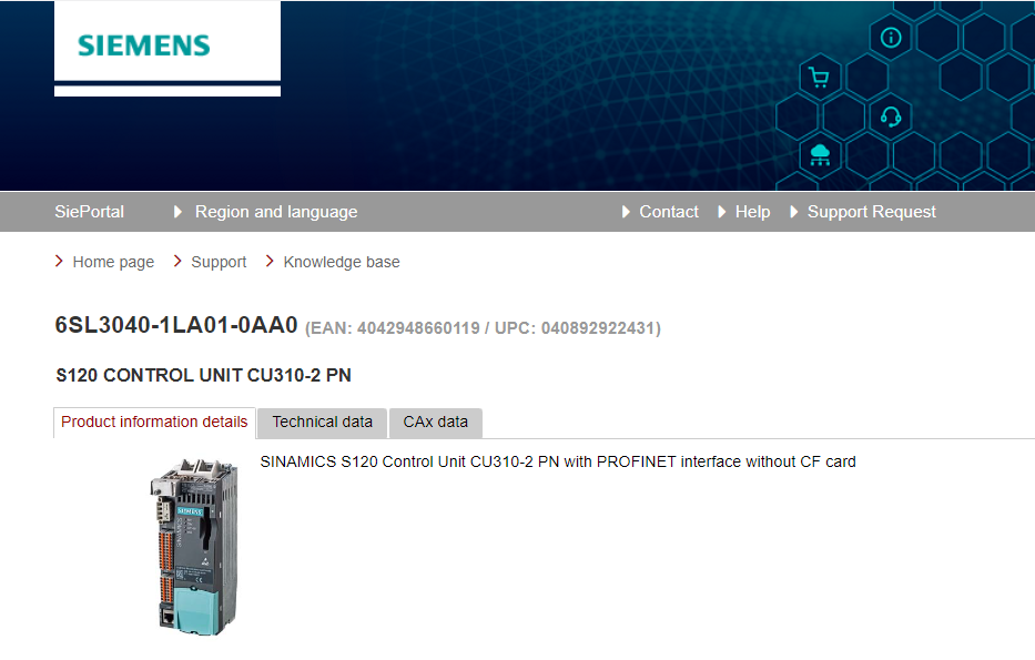 SINAMICS S120 Control Unit CU310-2 PN with PROFINET interface without CF card