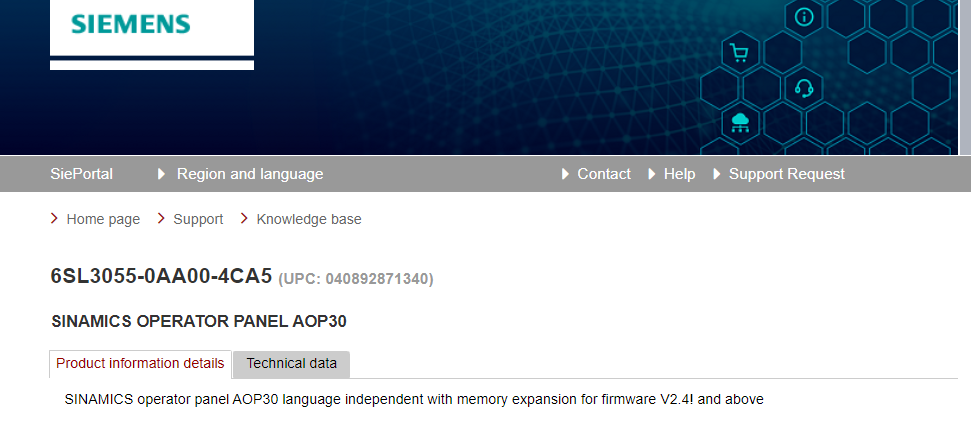SINAMICS operator panel AOP30 6SL3055-0AA00-4CA5