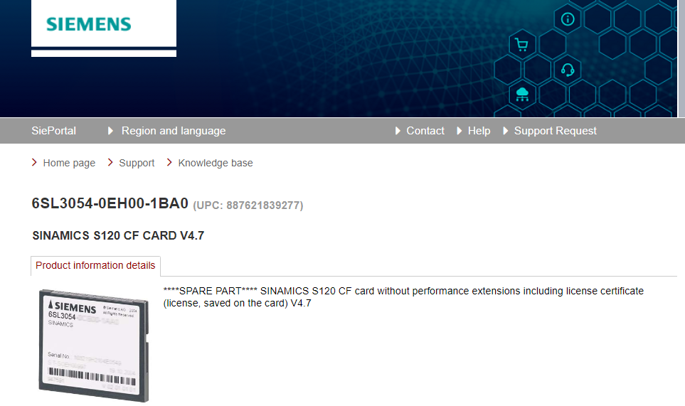 SINAMICS S120 CF card without performance extensions including license certificate (license, saved on the card) V4.7