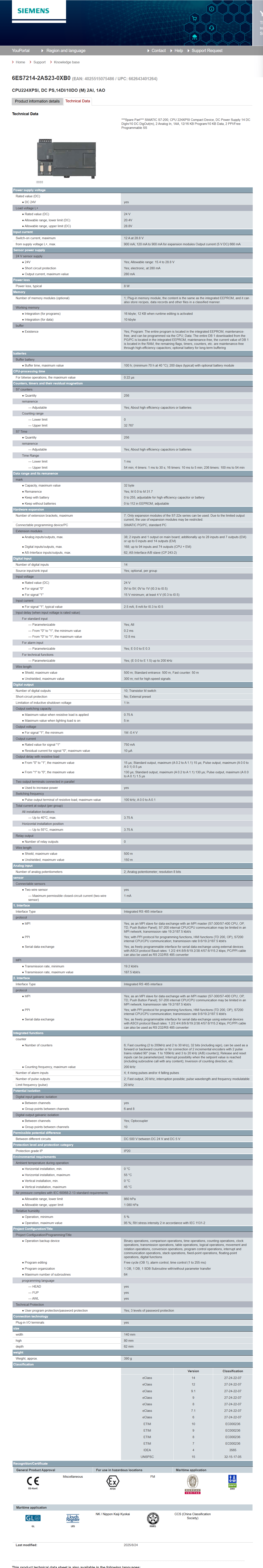| ***Spare Part*** SIMATIC S7-200, CPU 224XPSI Compact Device, DC Power Supply 14 DC DigIn/10 DC DigOut(m), 2 Analog In, 1AA, 12/16 KB Program/10 KB Data, 2 PPI/Free Programmable SS |