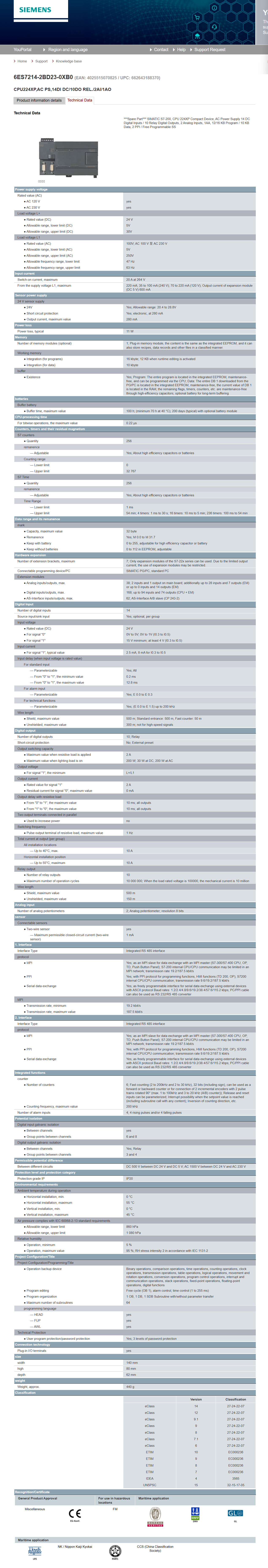 | ***Spare Part*** SIMATIC S7-200, CPU 224XP Compact Device, AC Power Supply 14 DC Digital Inputs / 10 Relay Digital Outputs, 2 Analog Inputs, 1AA, 12/16 KB Program / 10 KB Data, 2 PPI / Free Programmable SS |