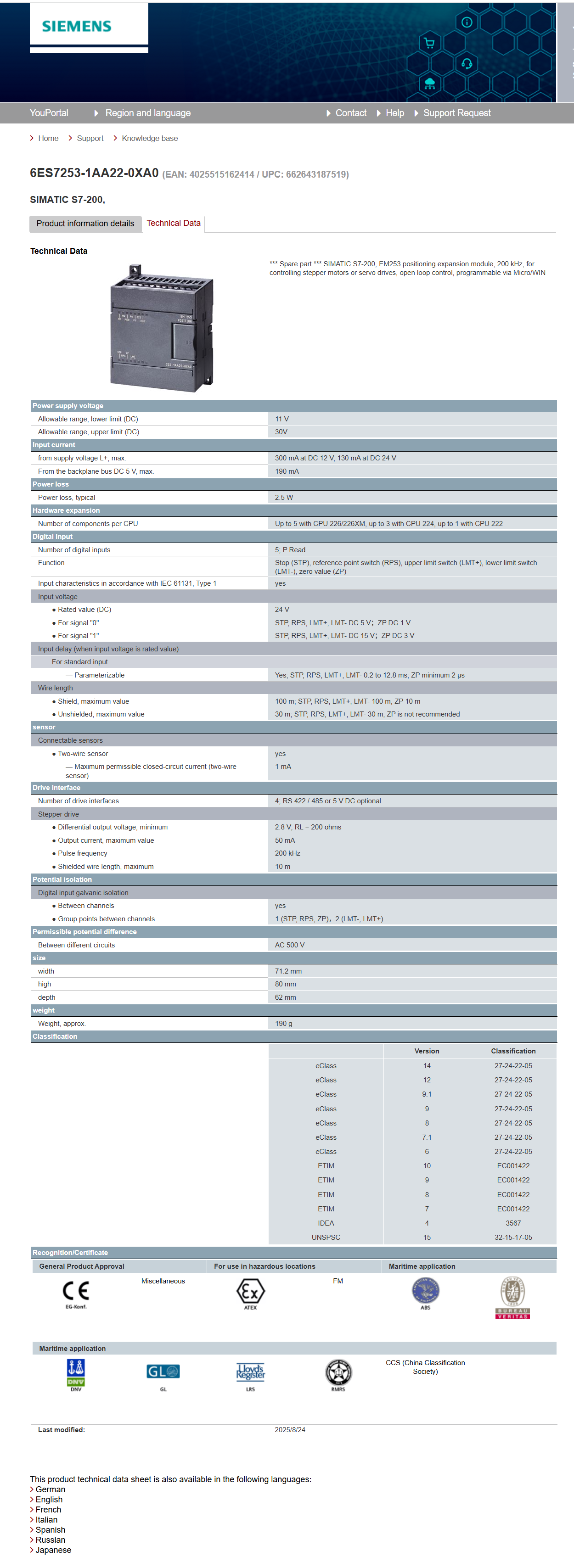 Siemens positioning module 6ES7253-1AA22-0XA0