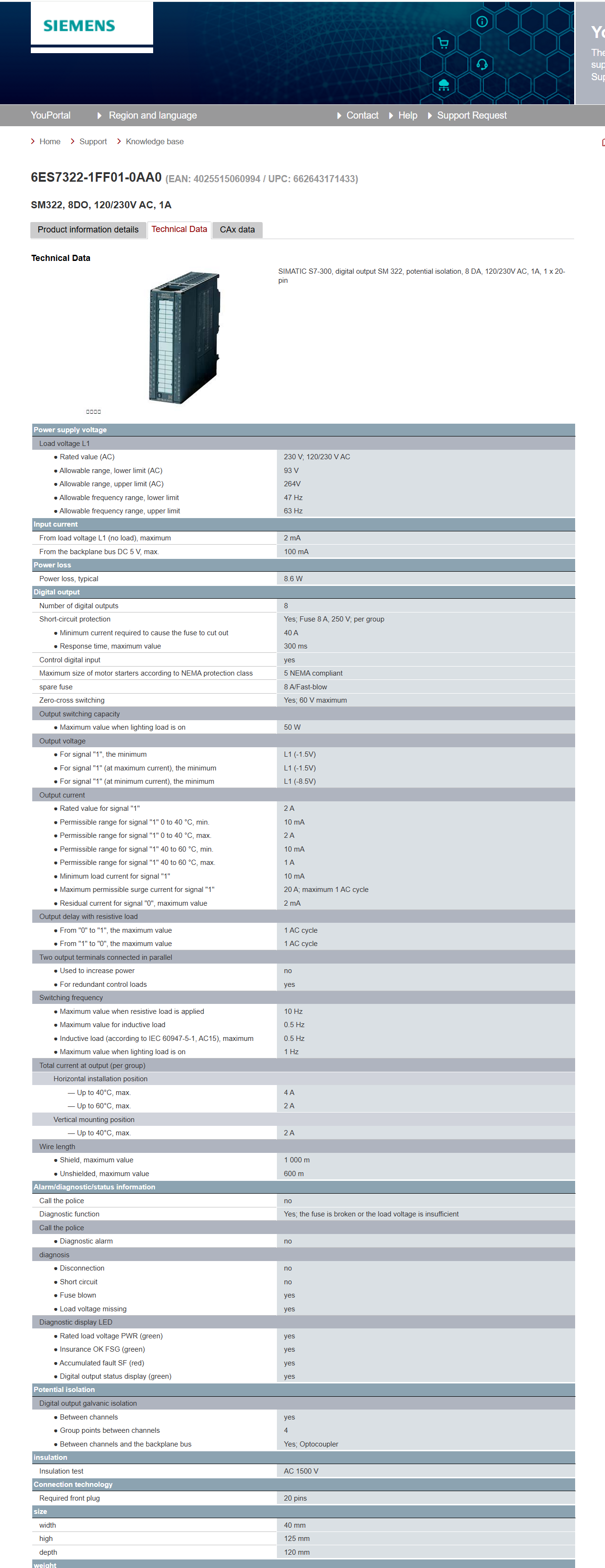 SIMATIC S7-300, Digital output SM 322 6ES7322-1FF01-0AA0