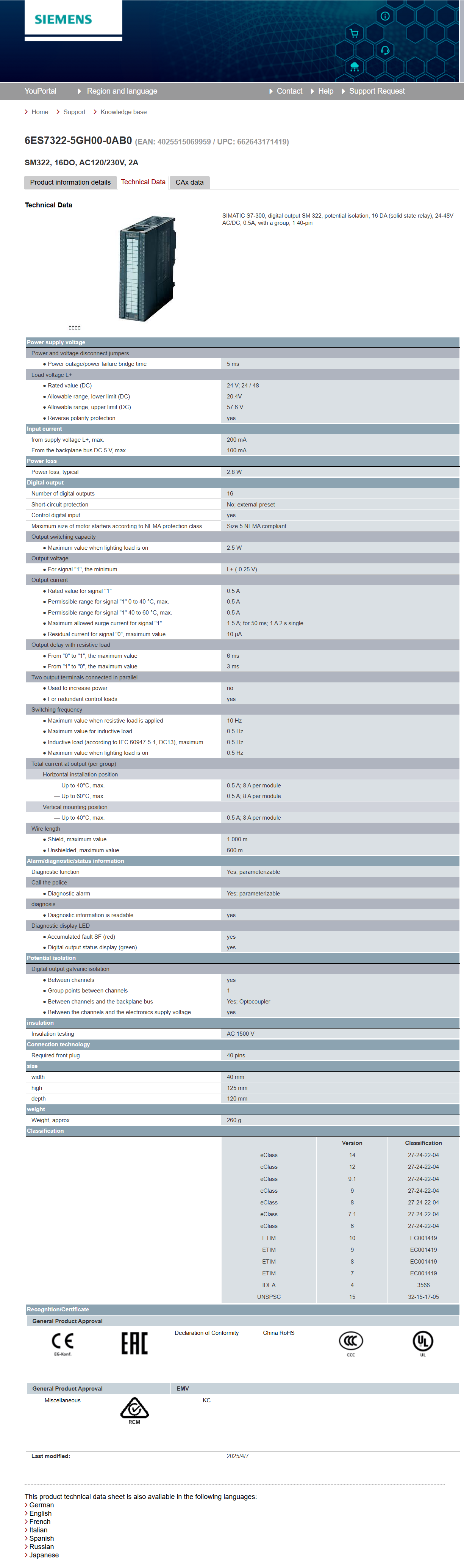 SIMATIC S7-300, Digital output SM 322 6ES7322-5GH00-0AB0