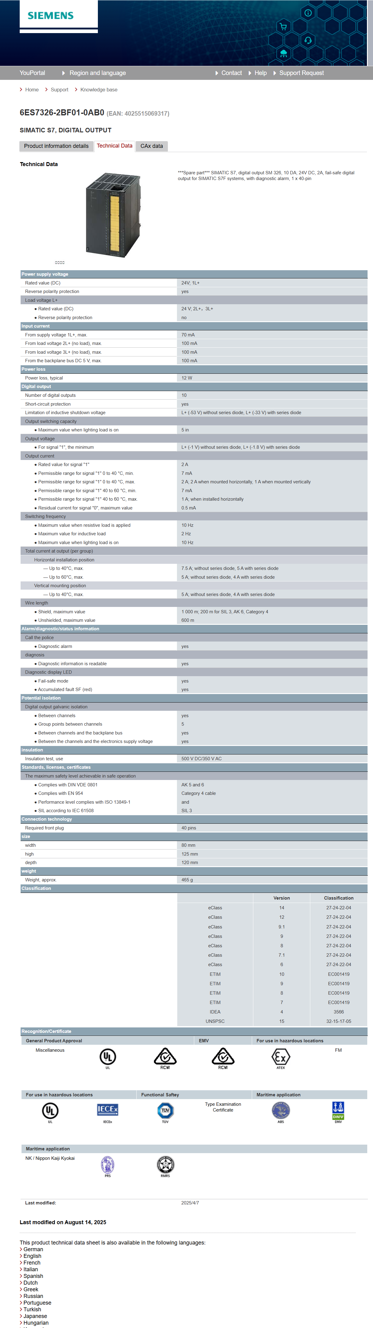 SIMATIC S7, digital output SM 326 6ES7326-2BF01-0AB0